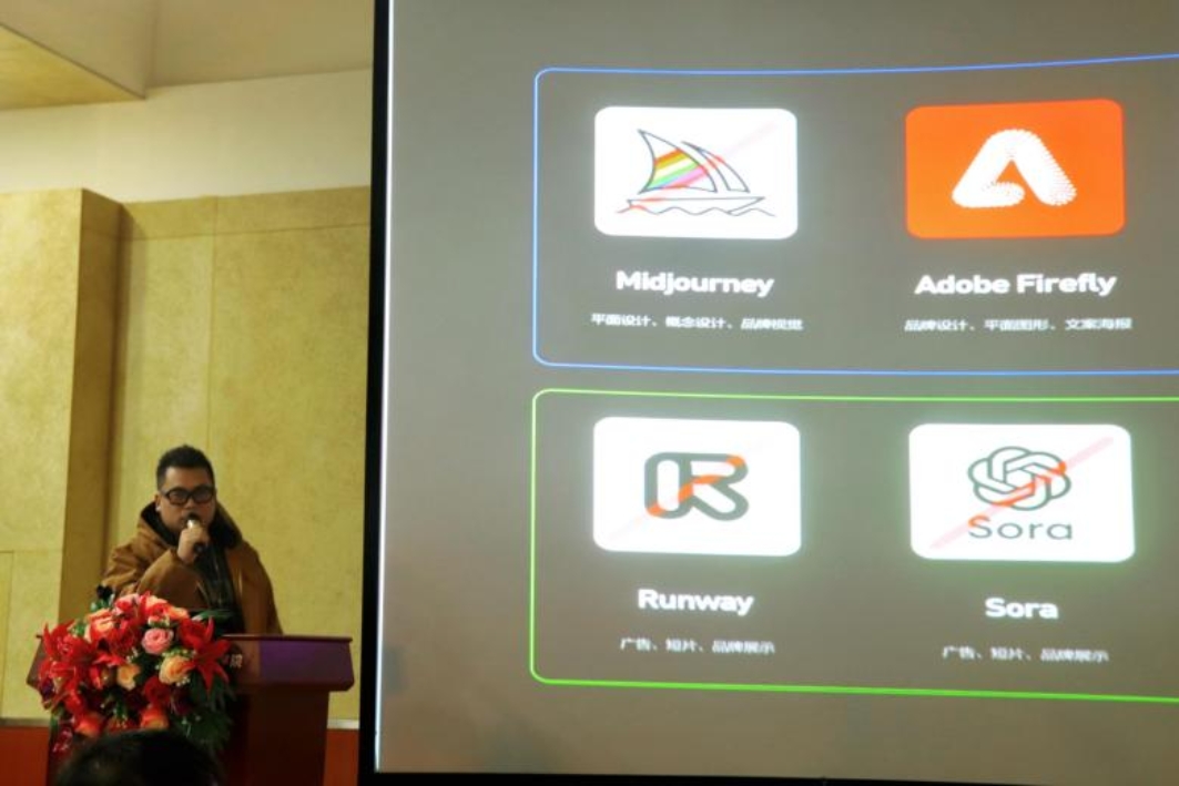 潘钢先生结合自身职业经历与品牌设计案例,强调了设计从业者必须时刻关注并紧跟行业发展的脉搏,即行业趋势和市场需求的变化。他深入阐释了 AIGC在设计领域的应用价值与发展潜力,为在场师生带来设计创新的前沿思考,为设计教育和行业实践提供了新的视角和思路。