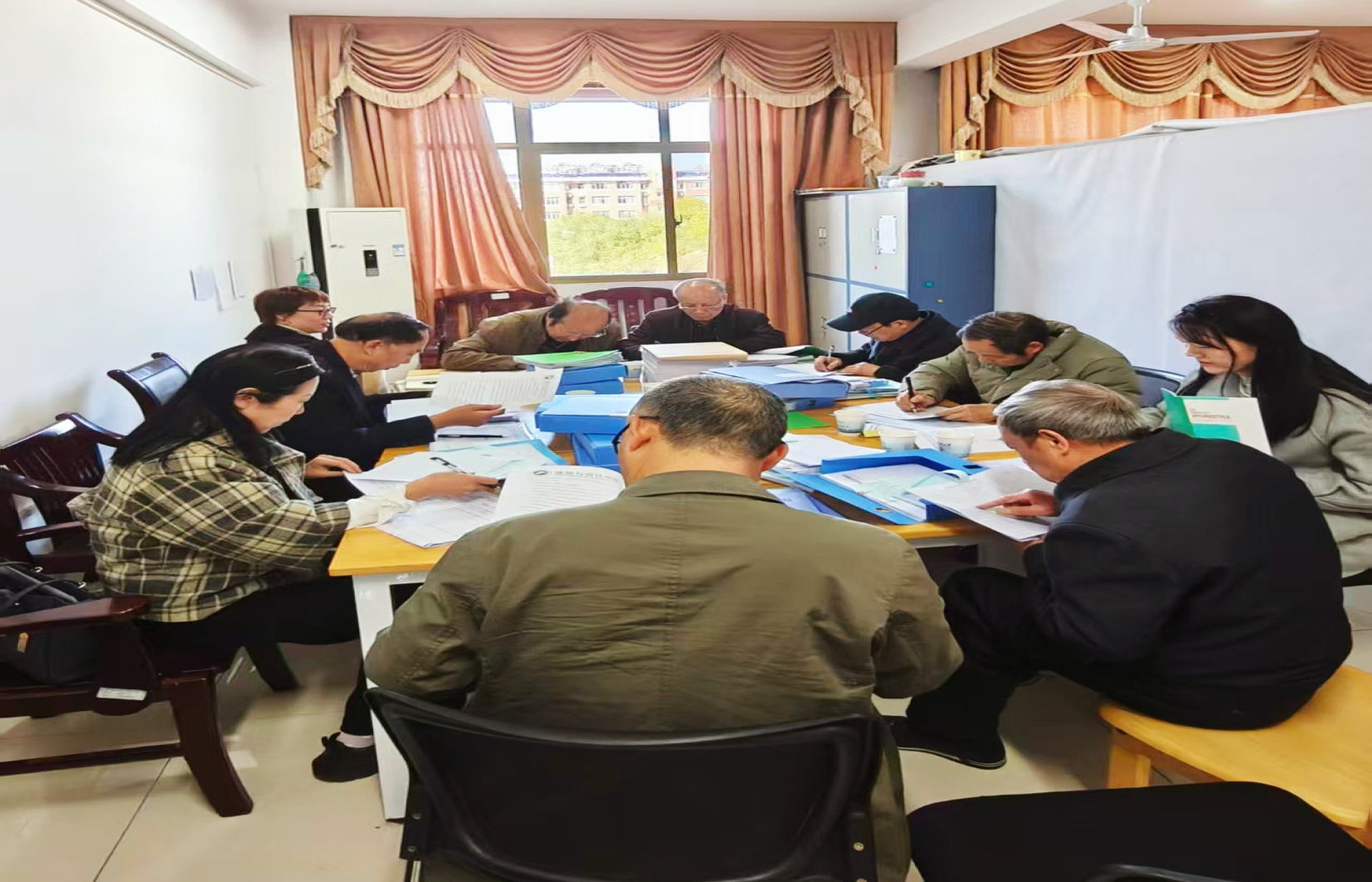 在立志楼B329教学材料检查现场,校级督导团组成检查组,通过查阅教案、课件、作业批改记录、教学反思等材料,全面了解教师教学准备、教学过程实施及教学效果反馈情况,对规范齐全、亮点突出的教学材料予以肯定,同时针对部分材料中存在的不足提出整改建议。