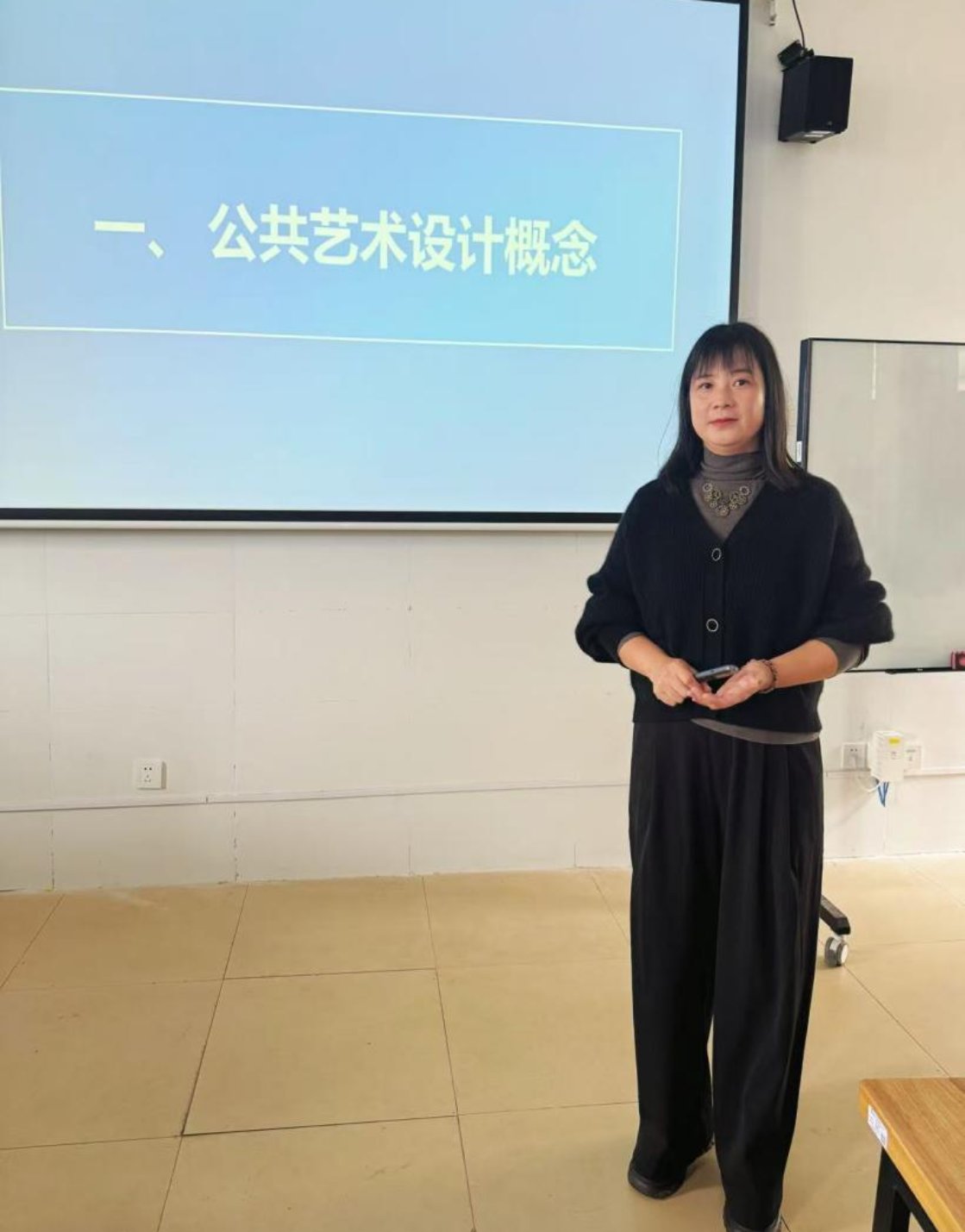 在课程中,郭琼老师提出了“设计的思考”体系,既注重学生审美能力的培养,又强调设计需具备创意个性与设计价值观引领,坚决反对抄袭与思维固化,同时倡导设计要重视受众感受、引发情感共鸣。这一教学内容不仅聚焦公共艺术设计的专业知识传授,更深度融入课程思政理念,将审美教育、创新精神与人文关怀有机结合。