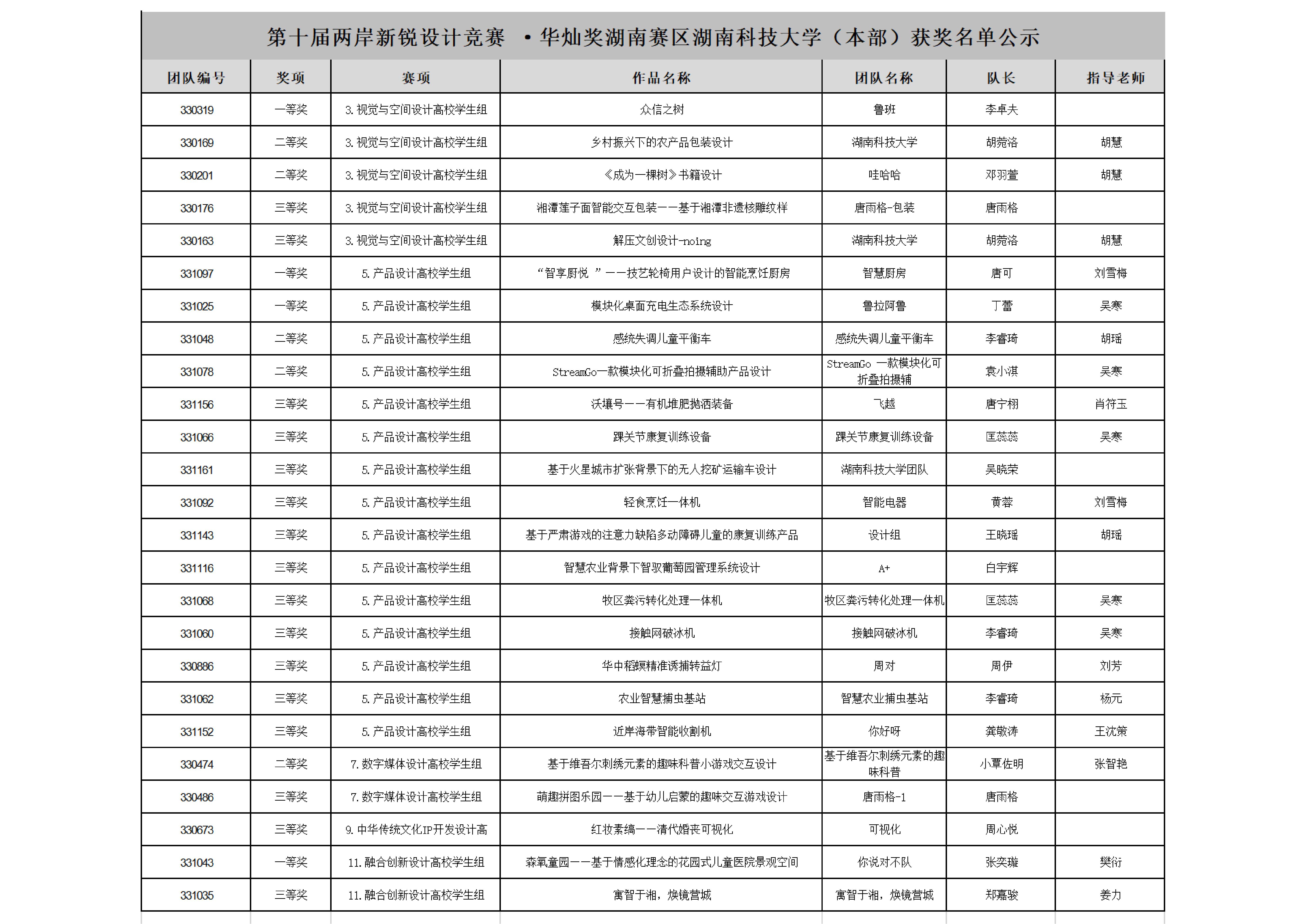 图:第十届“两岸新锐设计竞赛・华灿奖”获奖名单