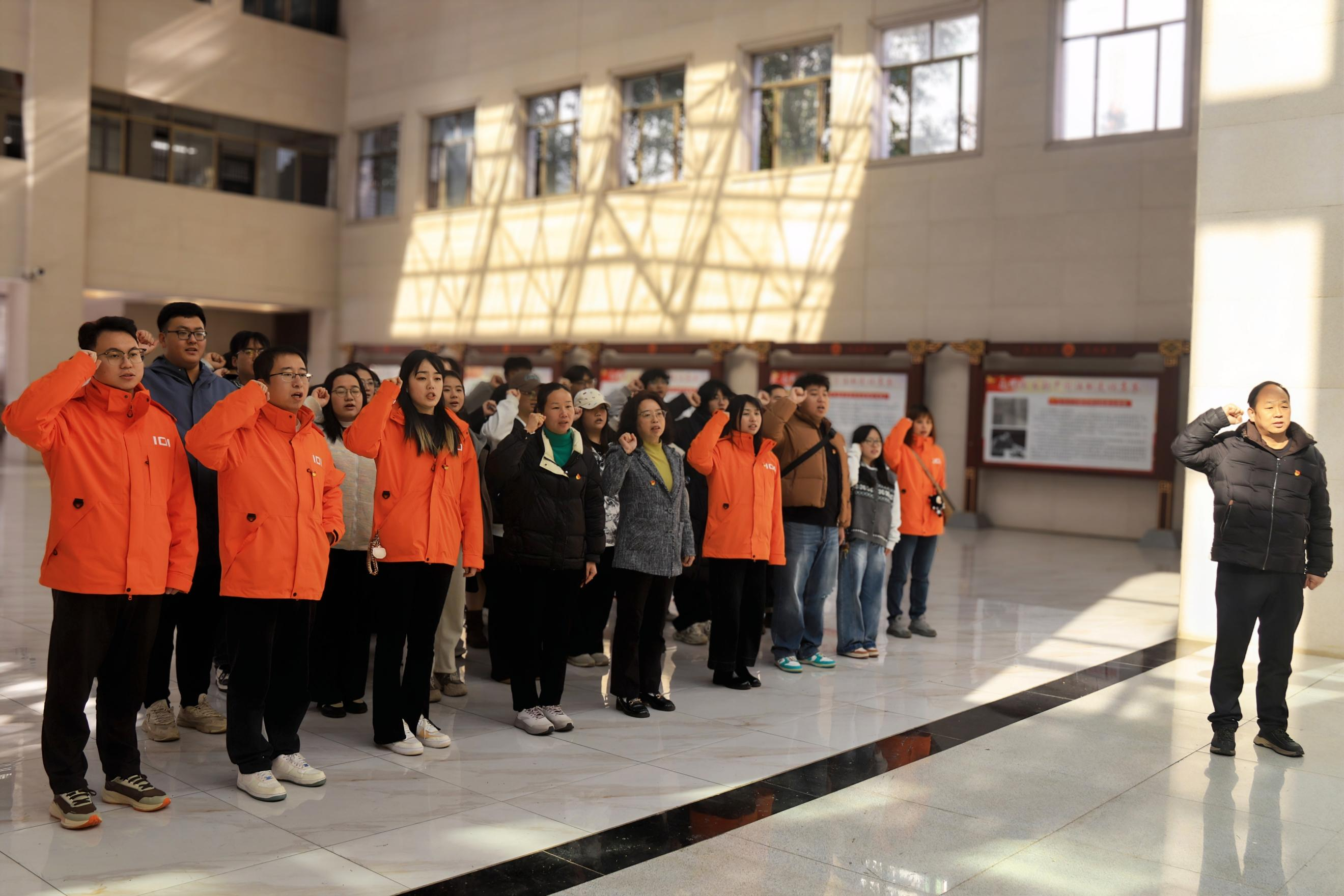 随后,全体党员前往东山书院。师生们穿行于毛泽东、陈赓等先辈曾使用过的教室、宿舍与阅览室,聆听讲解员讲述书院“教之以实事,程之以实功”的办学理念及其培养革命人才的辉煌历史。结合建筑与设计学科特色,师生们重点观察了书院“礼乐相成”的建筑布局与中西融合的设计细节,从中汲取红色美学灵感,激发艺术创作与设计思考。参观结束后,在马忠石的带领下,全体党员在书院礼堂进行入党宣誓,进一步坚定理想信念。