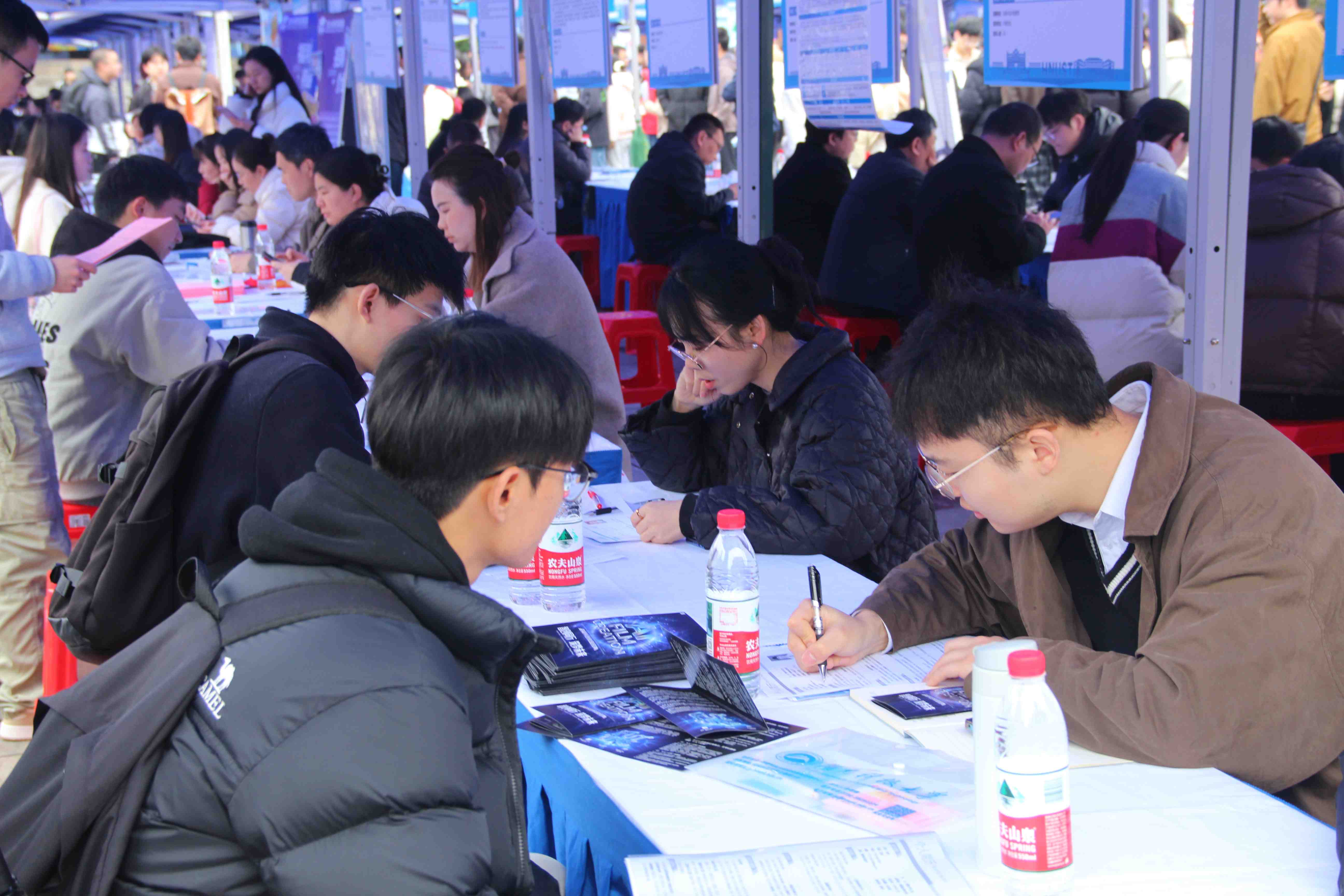 招聘会现场,毕业生们手持简历,在各展位前驻足咨询,认真了解招聘信息,向心仪岗位投递简历,并与招聘人员深入交流。部分企业展位前排起长队,招聘人员详细解答同学们的疑问,介绍企业发展情况、岗位任职要求与薪资待遇,现场还提供了就业指导、简历诊断、面试技巧、一对一职业规划咨询等服务。