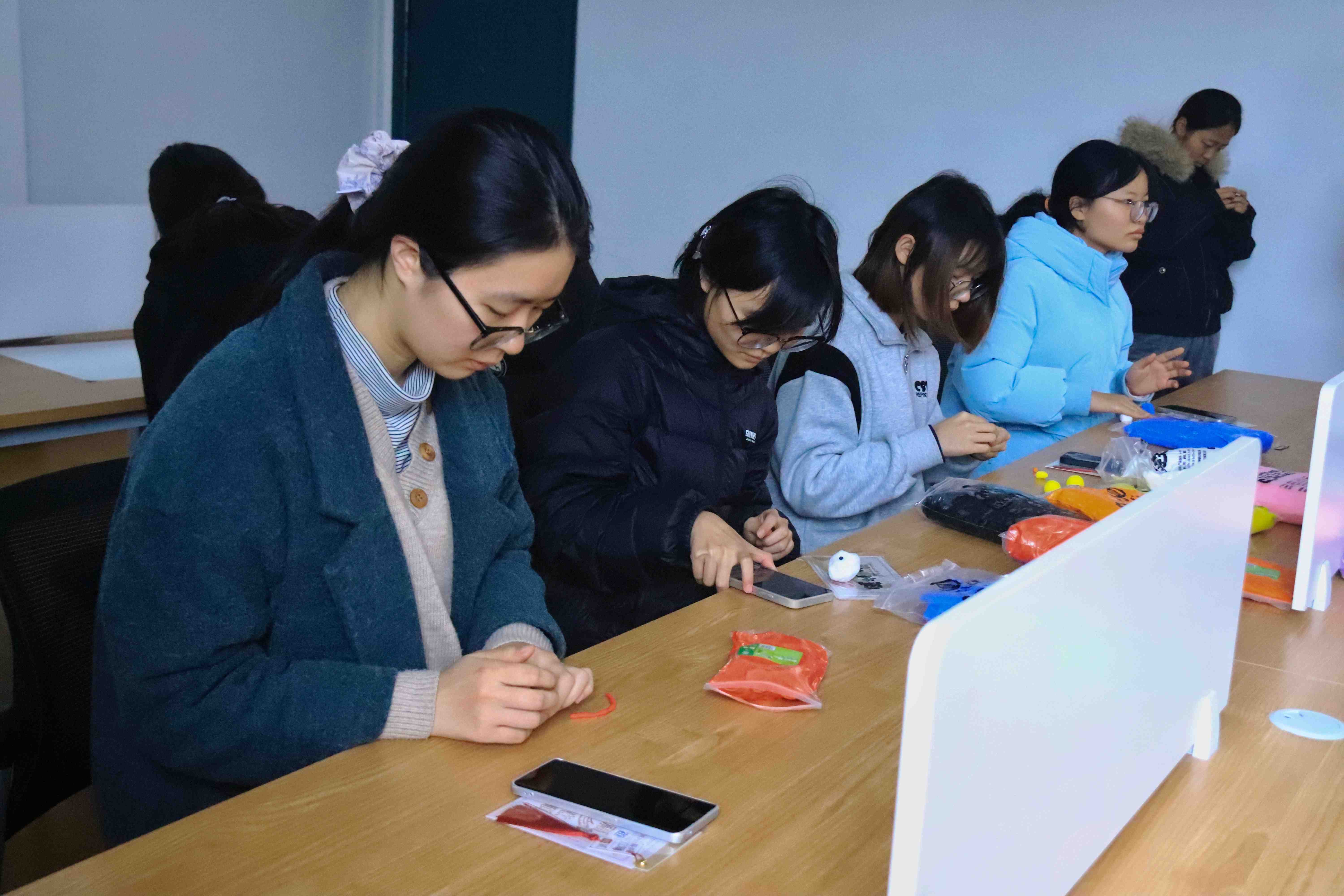 黏土创意捏制环节则贴合学院专业特色,现场备有多彩黏土及工具,女生代表们发挥创意与专业优势,捏制出绿植、迷你建筑模型、萌趣小动物等各类作品,在交流协作中展现细腻情感与出色创造力,现场欢声笑语不断。
