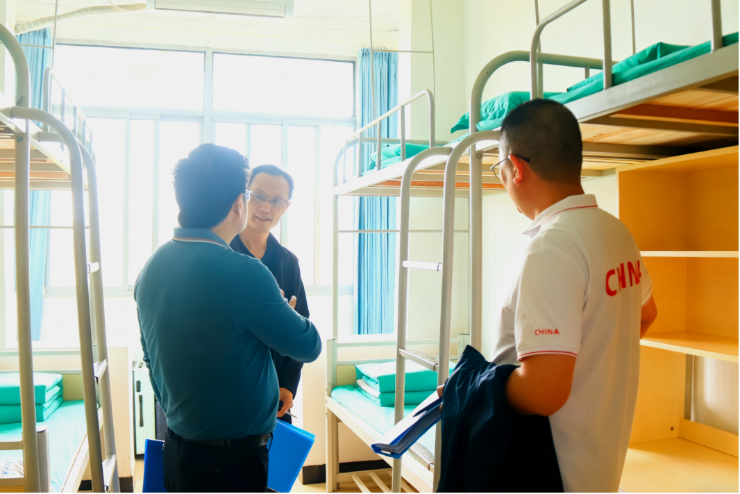 为强化新生军训纪律意识,培养良好生活习惯,9月24日,湖南科技大学组织开展了2025级新生军训内务卫生评比。校保卫处处长、武装部部长沈智祥等领导带队开展了此次检查工作,确保了检查的专业性与规范性。建筑与设计学院党委副书记马忠石、25级新生辅导员等参加。