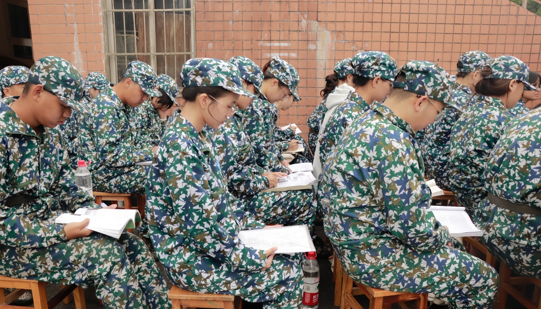 军训期间,部分新生因身体原因不得不进入“伤病连”。然而,身体的不适并未阻挡他们对军训的热情和为学院争光的决心。即使不能参与高强度队列训练,他们也始终以积极态度投入军训全程:一方面时刻关注方阵训练进展,为队友加油鼓劲;另一方面主动学习军事理论知识,认真记录国防常识、战术基础等内容,以“别样方式”完成军训任务,用行动诠释着对军训的重视与担当。